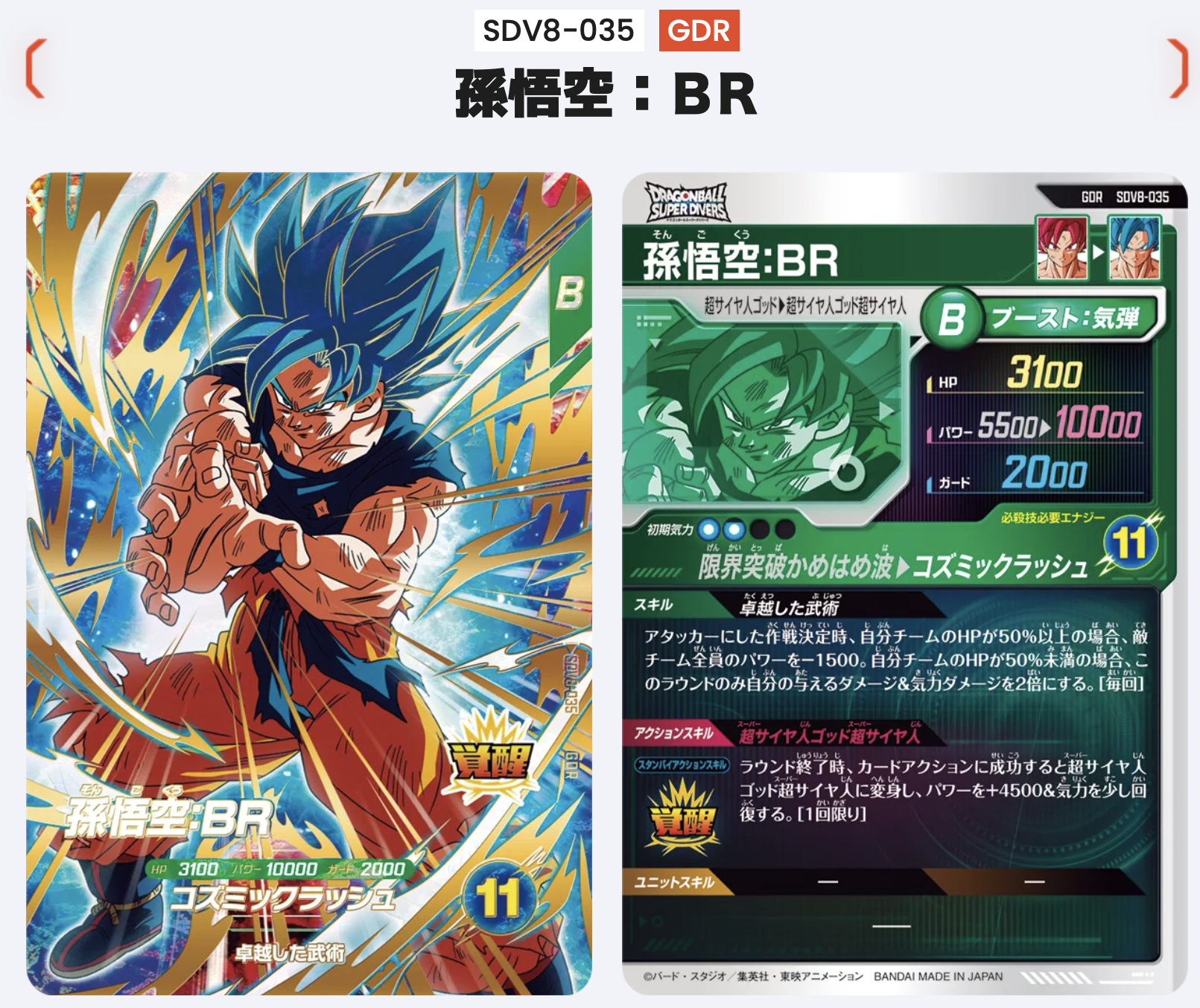 孫悟空:BRは貴重なパワー下げができる環境カードで、弱点も少なく汎用性の高さがとても高いです。